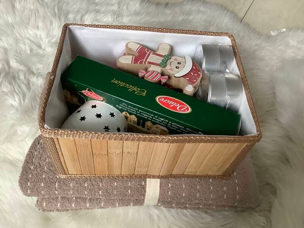 Christmas gift set no. 8 (Box : WITHOUT WORDS) Surprise your mum, grandmother, wife, sister, daughter, girlfriend or bestie with a wonderful Christmas gift. Contains 3 sets of good quality bath towels in 3 sizes. A favourite tea, healthy and flavourful with a delicious aroma. Fantastic candles with an unforgettable scent, plus a candle holder atmospheric.. Flower and a surprise face mask. Delicious Delacre biscuits. The ultimate treat 😍 High quality and lovingly wrapped. 💫🌲