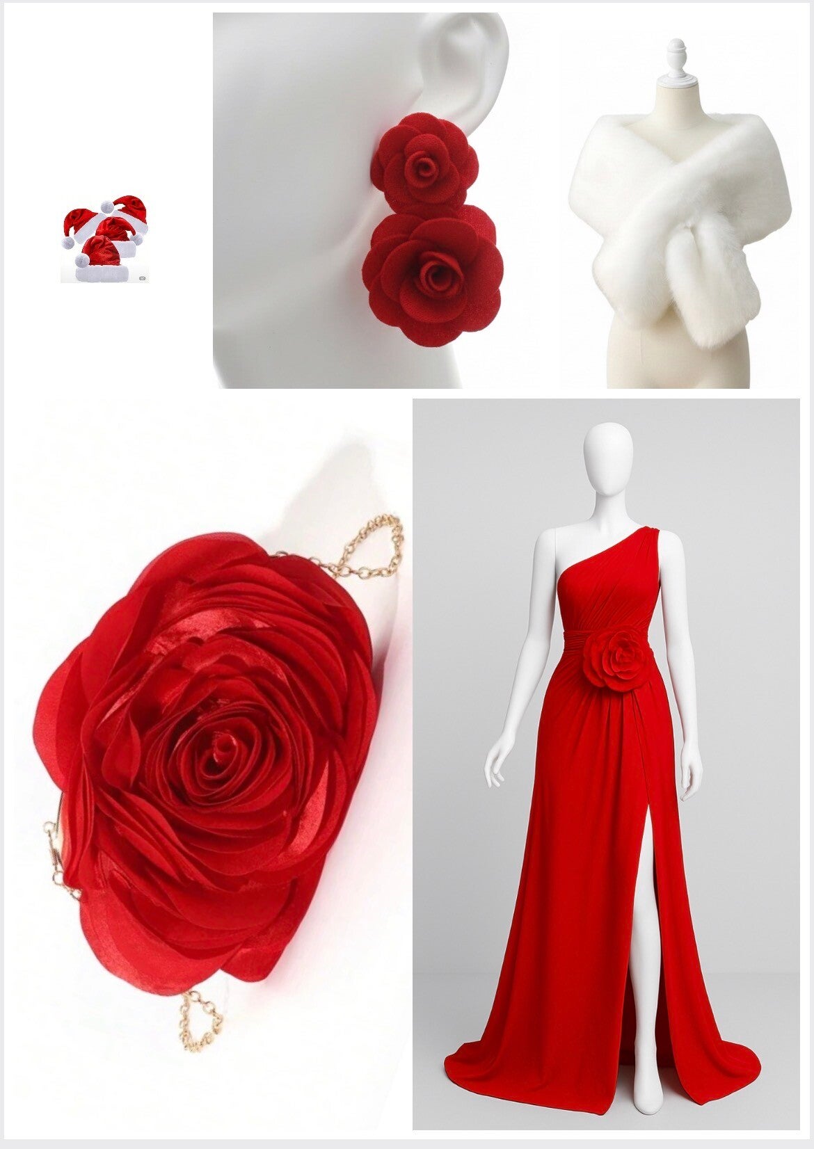 An enchanting collection that combines the warm red hue of flowers with winter luxury. Perfect glamour for any festive occasion.+Freebie Christmas hat (Christmas hat is only available in November and December)