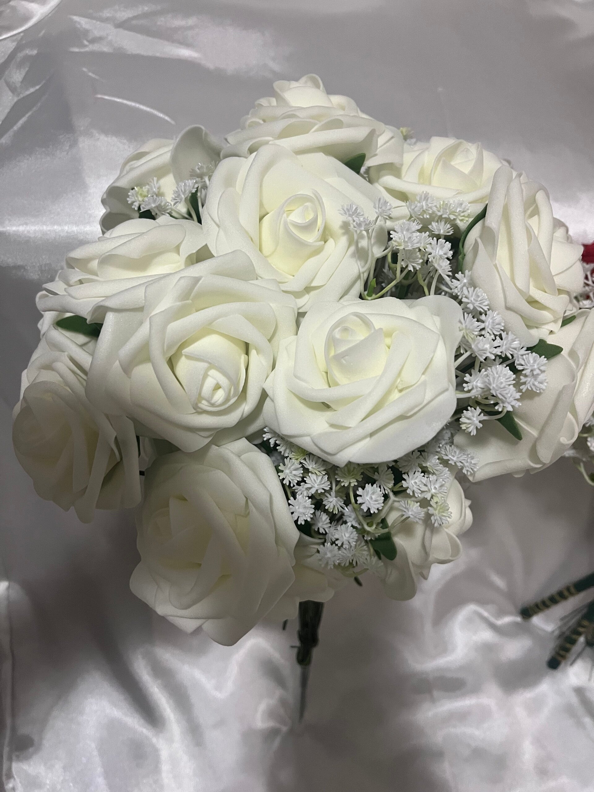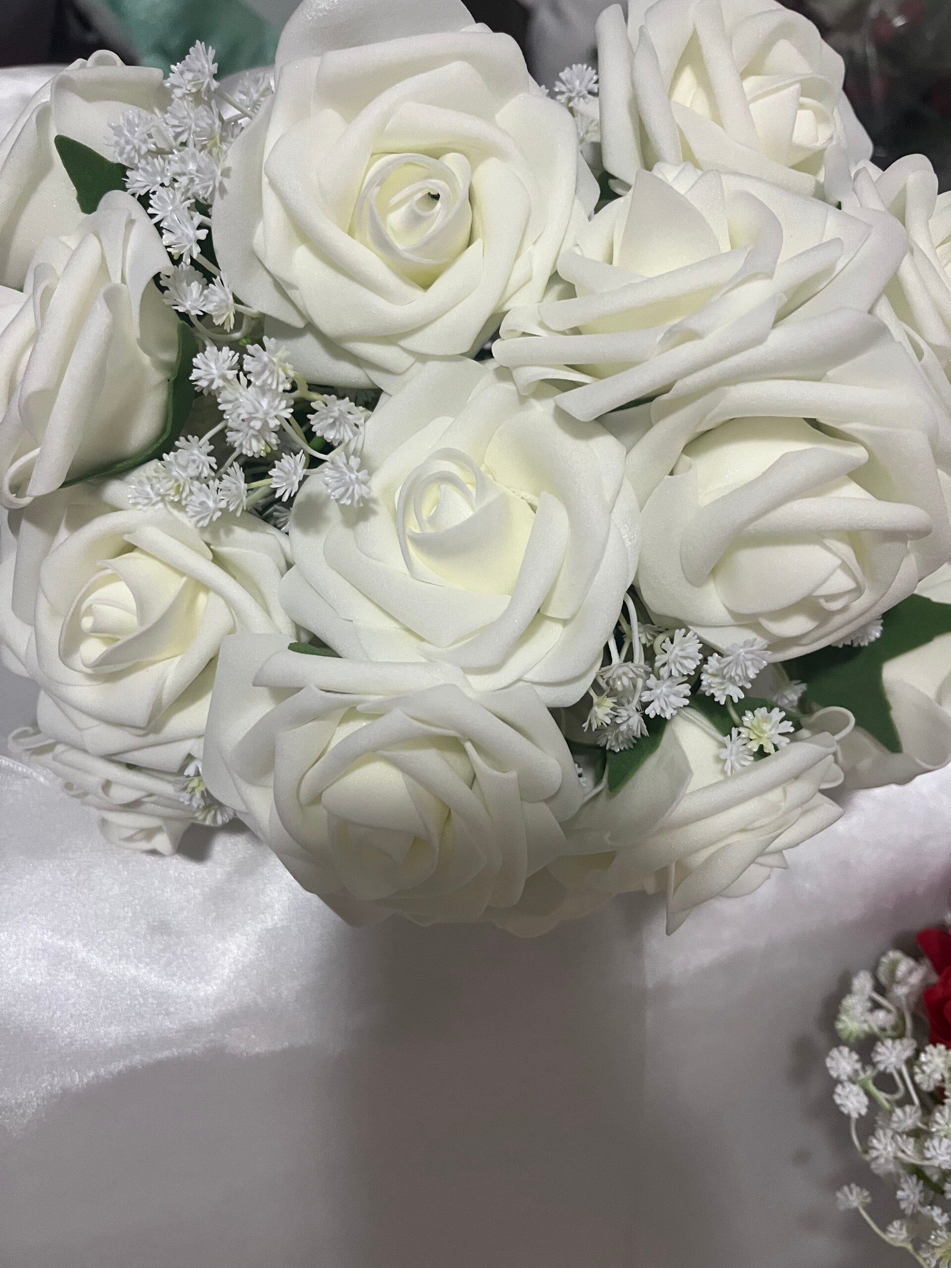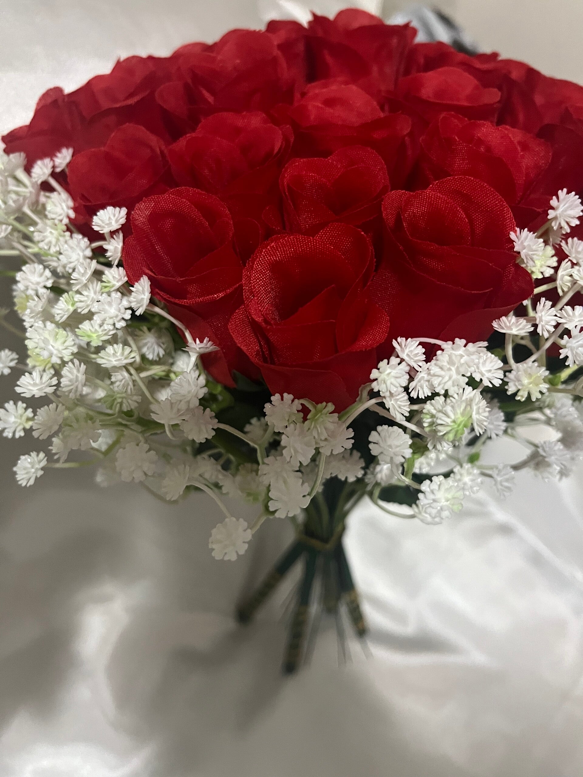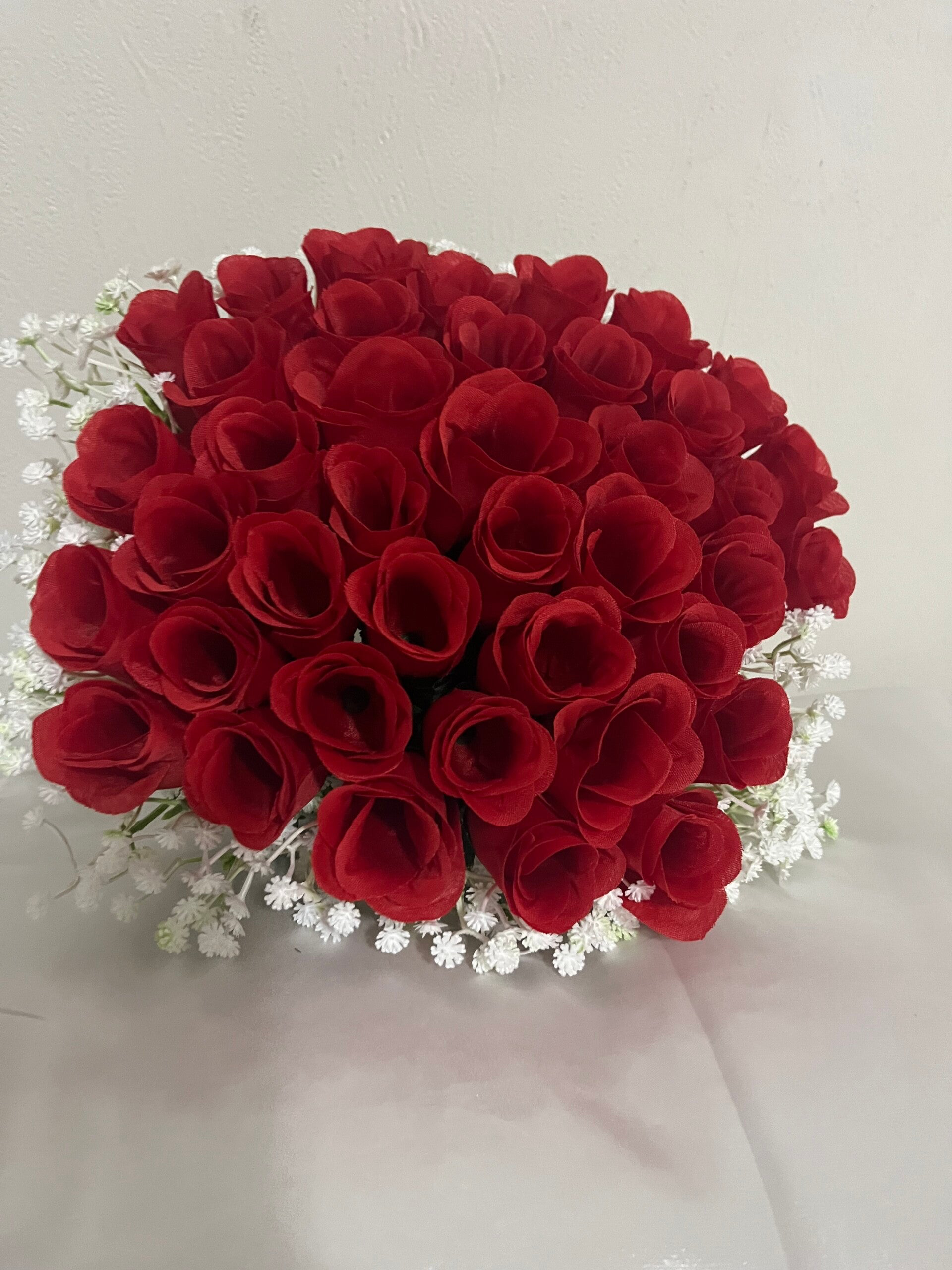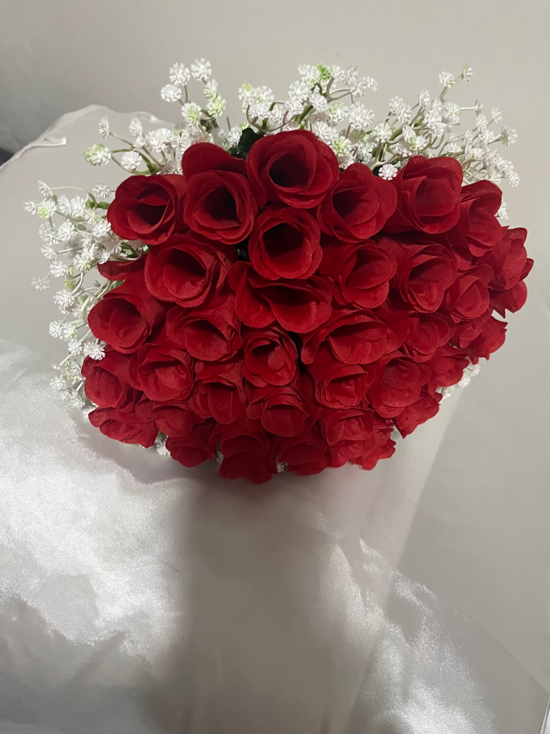 Dit kunstbloemen boeket in wit of rood staat symbool voor liefde en passie – en blijft altijd mooi. Geen verwelkte bloemen, wél een blijvende herinnering aan jullie liefde.