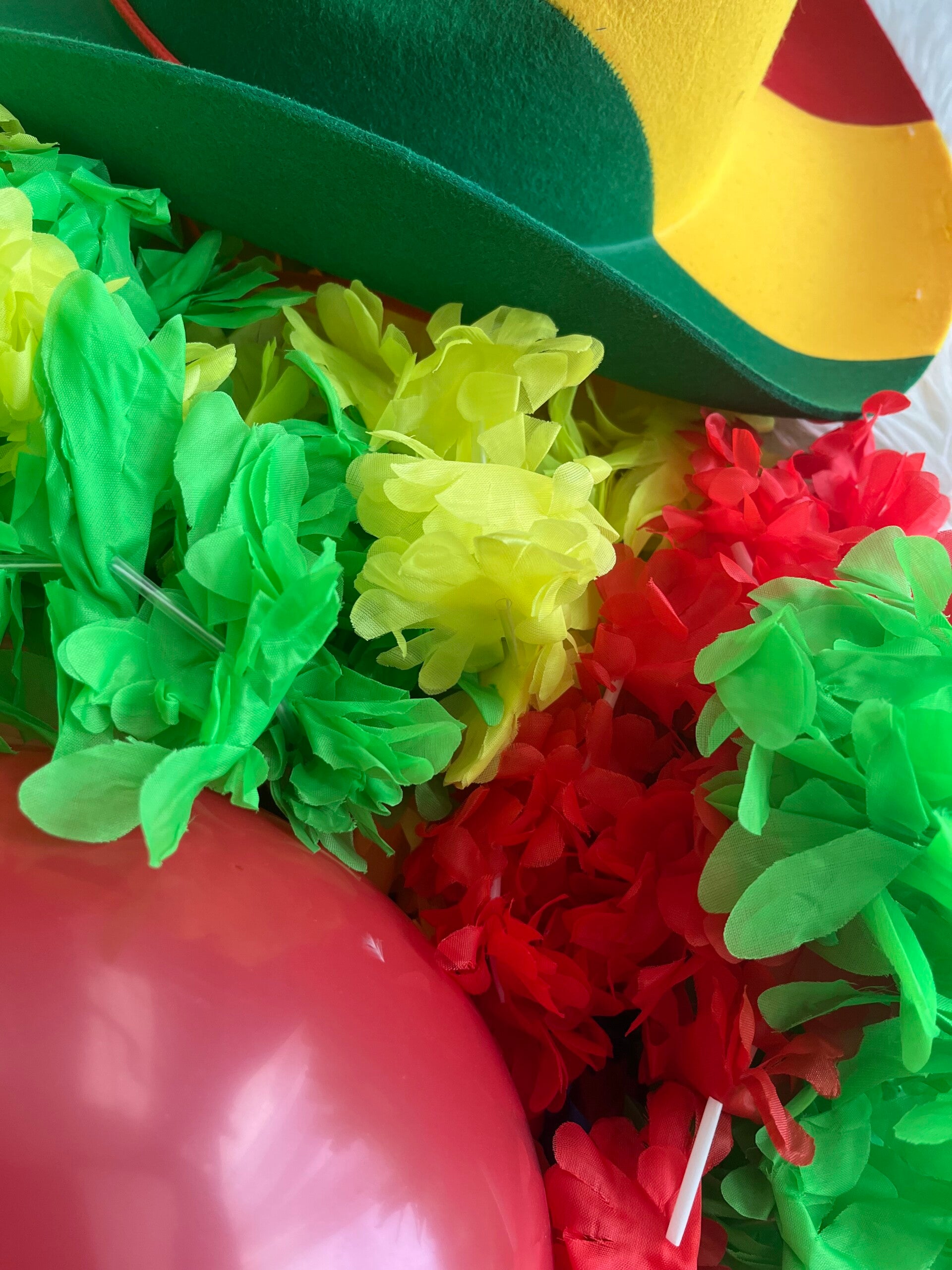 Maak je carnaval outfit compleet met bloemenkransen,hoedjes, haarclips, schmink, en kettingen. Perfect voor carnaval en themafeesten. Feestelijke boa van ca. 2 meter lang.